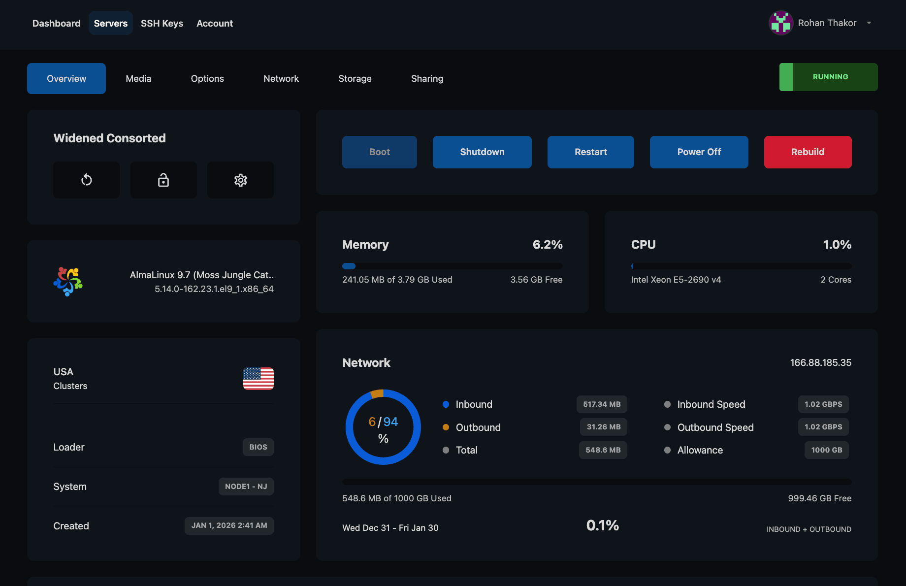 Start, stop, reboot, and reset servers instantly without waiting on support.